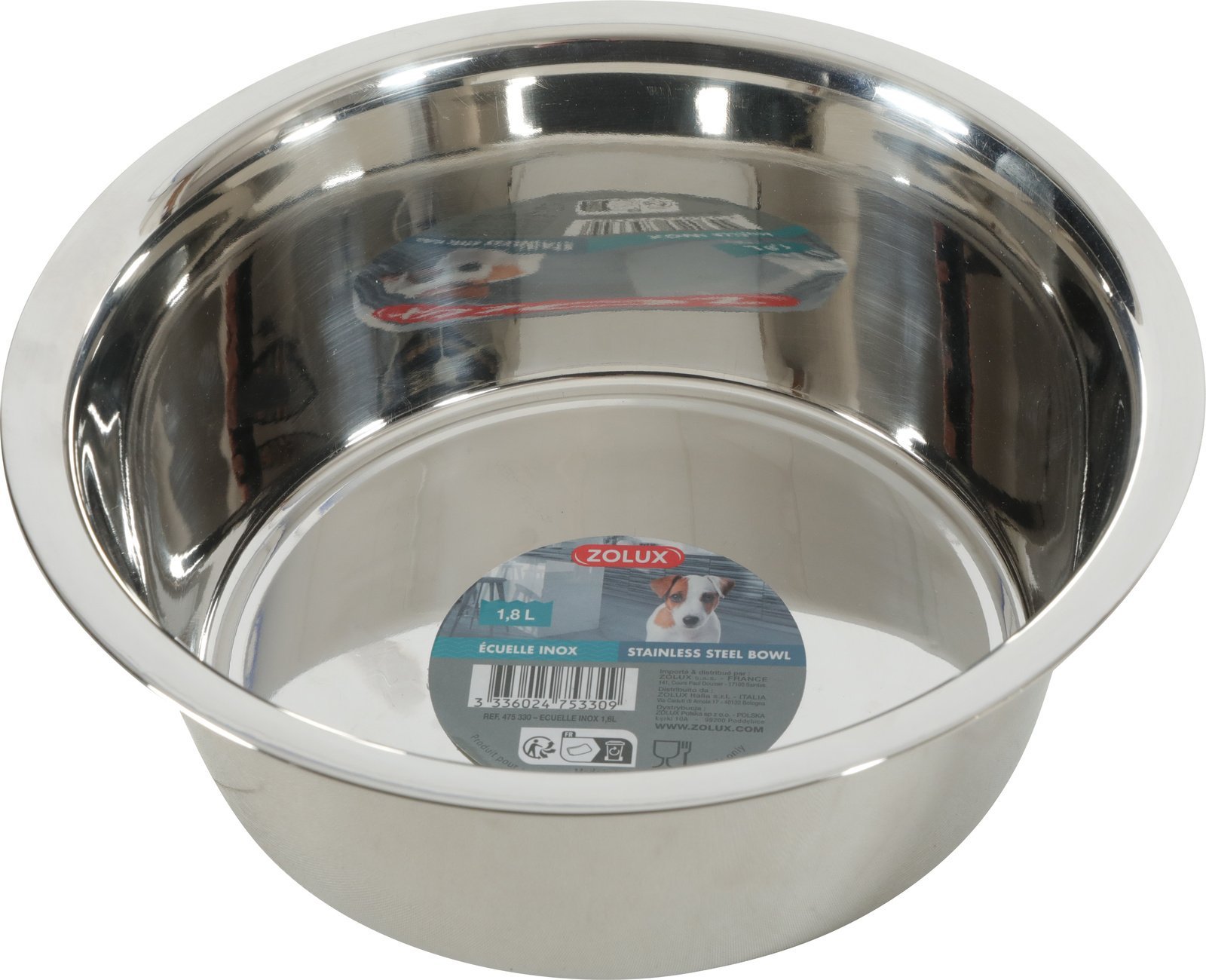 ECUELLE INOX 1,8L – 475330 disponible chez ZOLUX. Produit recommandé pour chien, chat.