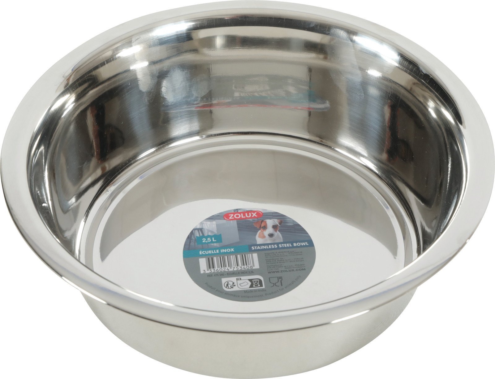 ECUELLE INOX 2,5L – 475340 disponible chez ZOLUX. Produit recommandé pour chien, chat.