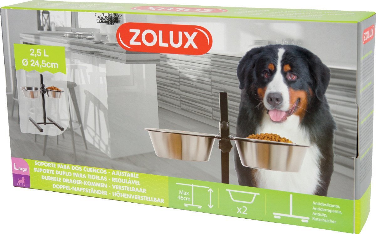 SUPPORT REGL AVEC 2 BOLS 2.5L – 475429 de la marque ZOLUX. Idéal pour chien, chat, qualité professionnelle. Livraison partout au Maroc.